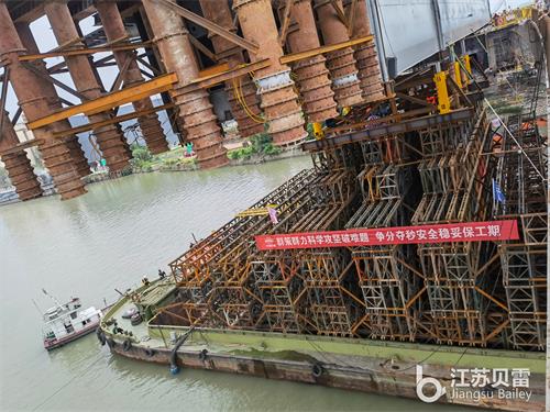 眾志成城:中鐵二十四局,江蘇貝雷,上海寶盛昌,上海先科,聯手創新杭州余杭區1800噸鋼箱梁浮托法跨運河(680米)工程圓滿成功。